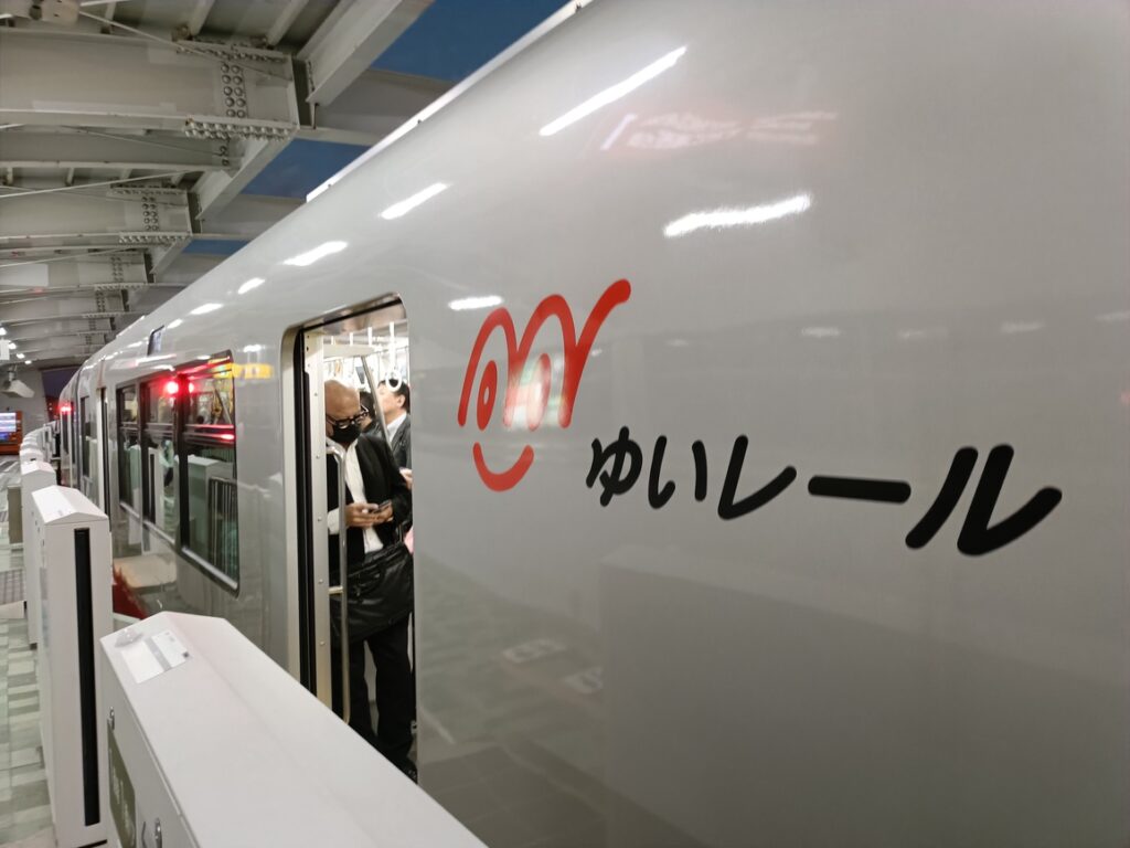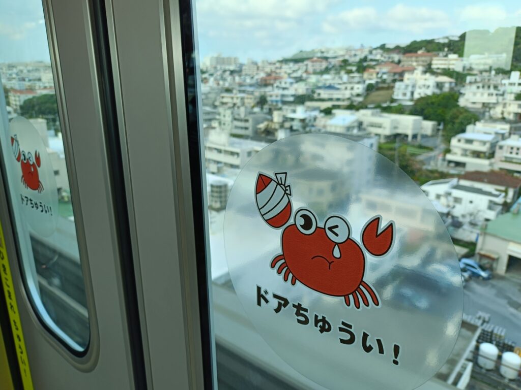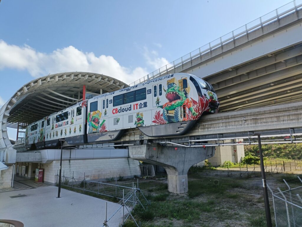 てだこ浦西駅が始発、那覇空港行きになりますが、平日昼間のゆいレールは乗り込むお客さんもまばら。2両編成と3両編成が走っていますが、この時乗った編成は特別仕様でした。